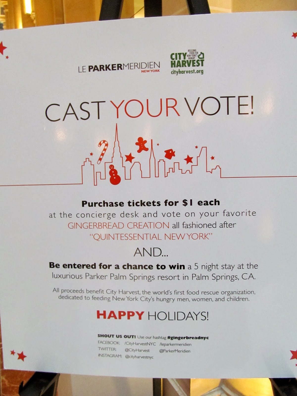 City Harvest. The theme this year is "Quintessential New York". The display runs from December 6th to January 6th. For $1. you can go to Concierge desk and purchase a ticket to vote for your favorite Gingerbread masterpiece. I am a "traditional" Gingerbread House girl so I loved This first House NYC Street Scene: The New York Holiday Hustle by